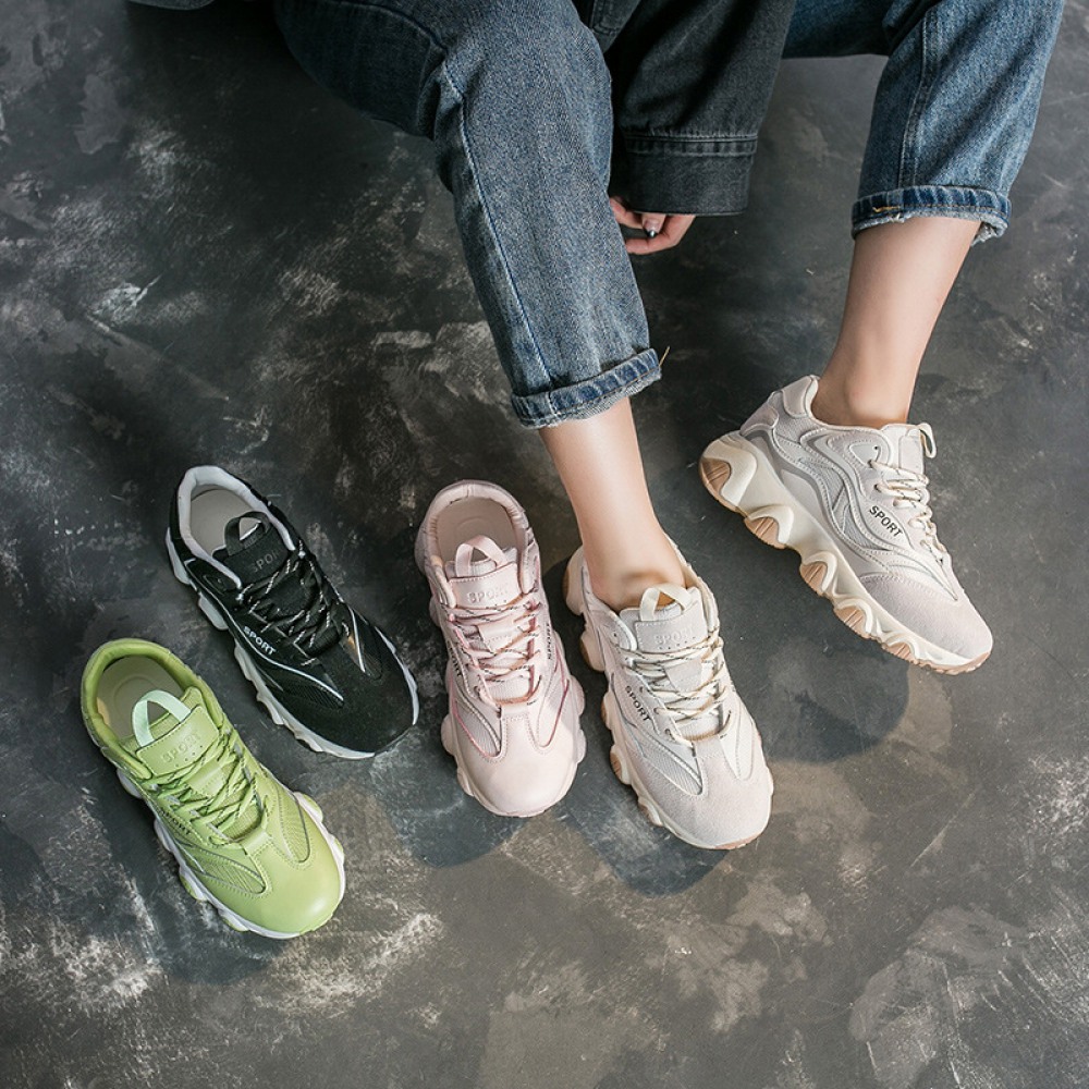Spring New Student Sports Shoes Women's Running Thick-Soled Height Increase Shoes Women